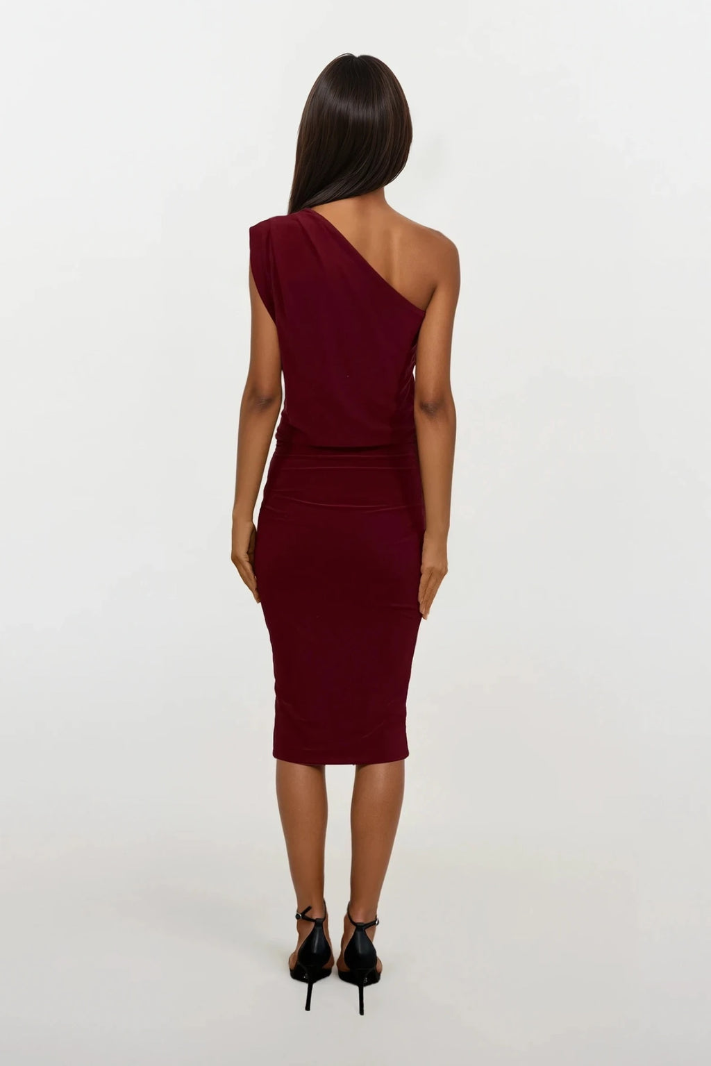 CALLIE BERRY ONE SHOULDERED MIDI DRESS WITH TIE SCARF WITH GOLD BUCKLE